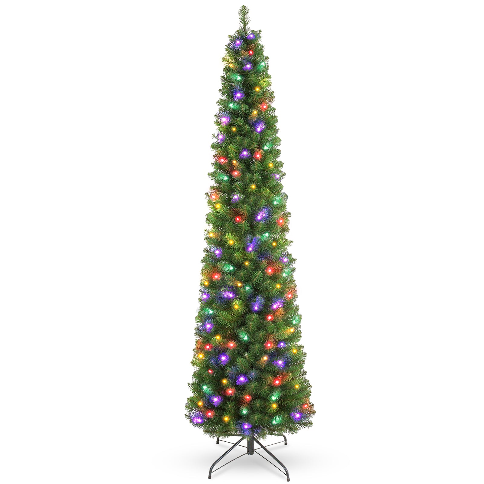 - Goosiay Pre-Lit Pencil Artificial Christmas Tree, 6.5ft Xmas Tree with Metal Stand for Christmas Decoration, Green